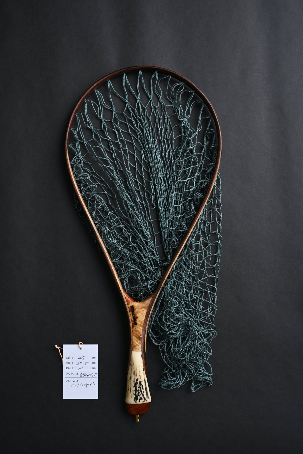 【OUTLET20%OFF】ワイズカスタム|ランディングネット|45cm|グリップ:花梨・スタッグ|ネット:MDシーグリーン|ストレート|Wisecustom(12135)