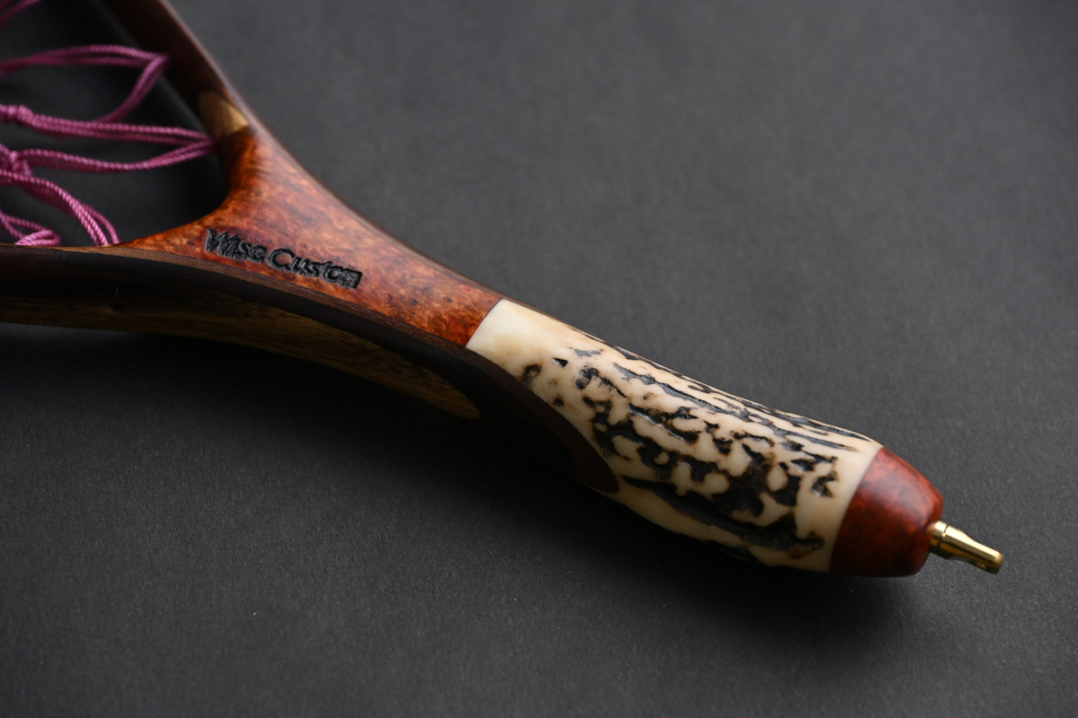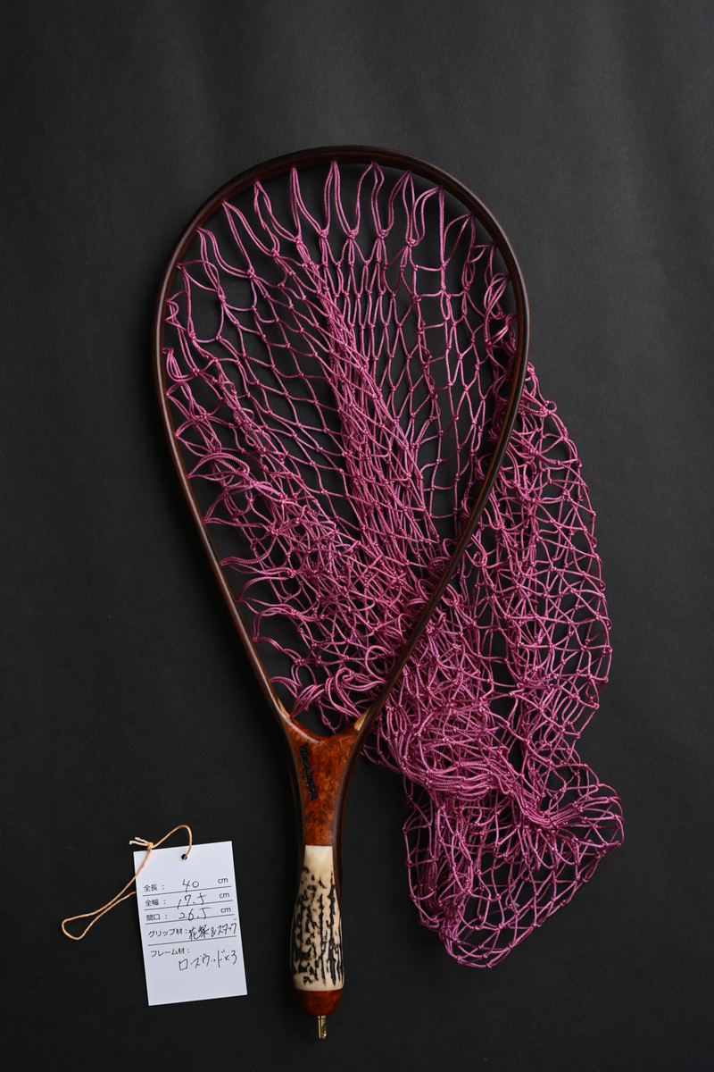 ワイズカスタム|【会員5%OFF】ランディングネット|40cm|グリップ:花梨+スタッグ|ネット:フューシャ|ハンドメイド|ストレート|Wisecustom(12187)