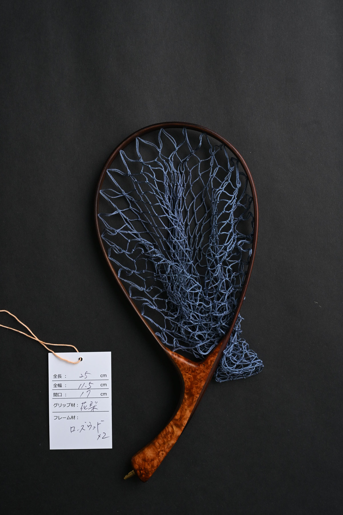 ワイズカスタム|【会員5%OFF】ランディングネット|25cm※サイズ注意|グリップ:花梨|ネット:ロイヤルブルー|ハンドメイド|カーブ|Wisecustom(12302)