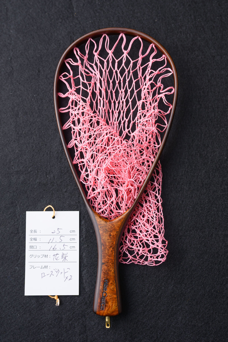 ワイズカスタム|【会員5%OFF】ランディングネット|25cm※サイズ注意|グリップ:花梨|ネット:ホットピンク|ハンドメイド|ストレート|Wisecustom(12476)