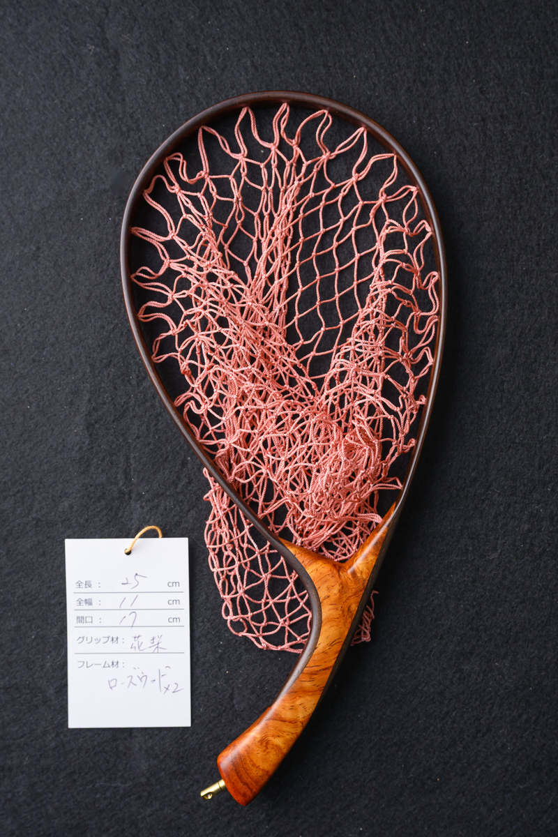 ワイズカスタム|【会員5%OFF】ランディングネット|25cm※サイズ注意|グリップ:花梨|ネット:トマト|ハンドメイド|カーブ|Wisecustom(12494)