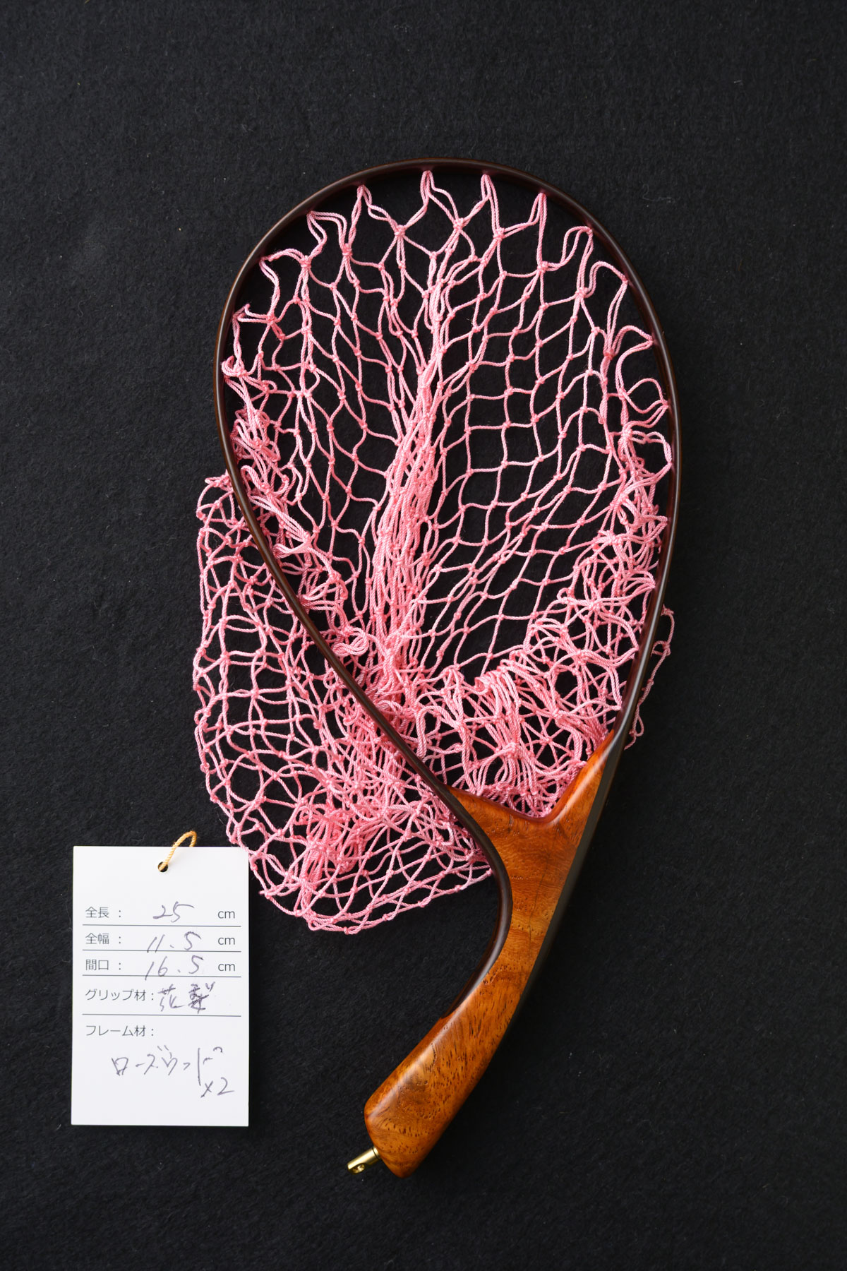 ワイズカスタム|【会員5%OFF】ランディングネット|25cm※サイズ注意|グリップ:花梨|ネット:ホットピンク|ハンドメイド|カーブ|Wisecustom(12512)