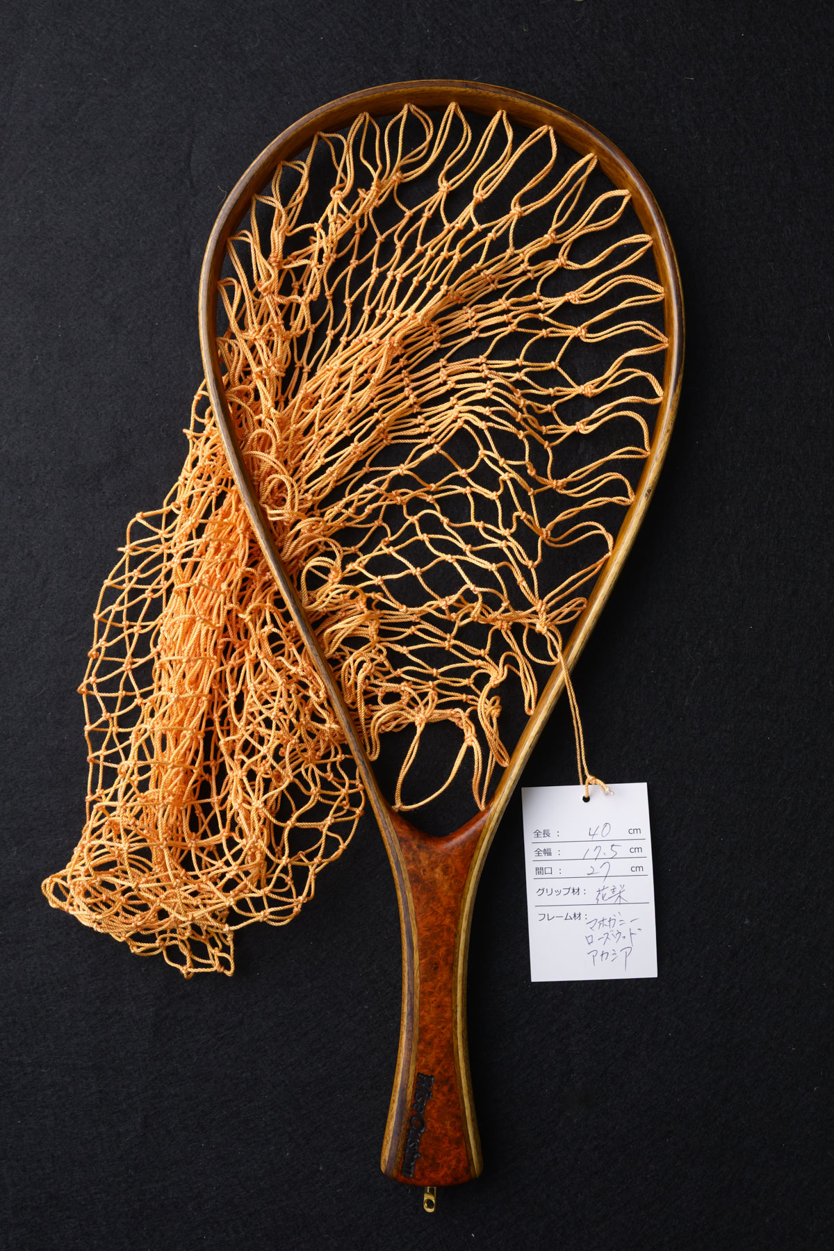 ワイズカスタム|【会員5%OFF】ランディングネット|40cm|グリップ:花梨(プレミアム)|ネット:ライトオレンジ|ハンドメイド|ストレート|Wisecustom(12555)