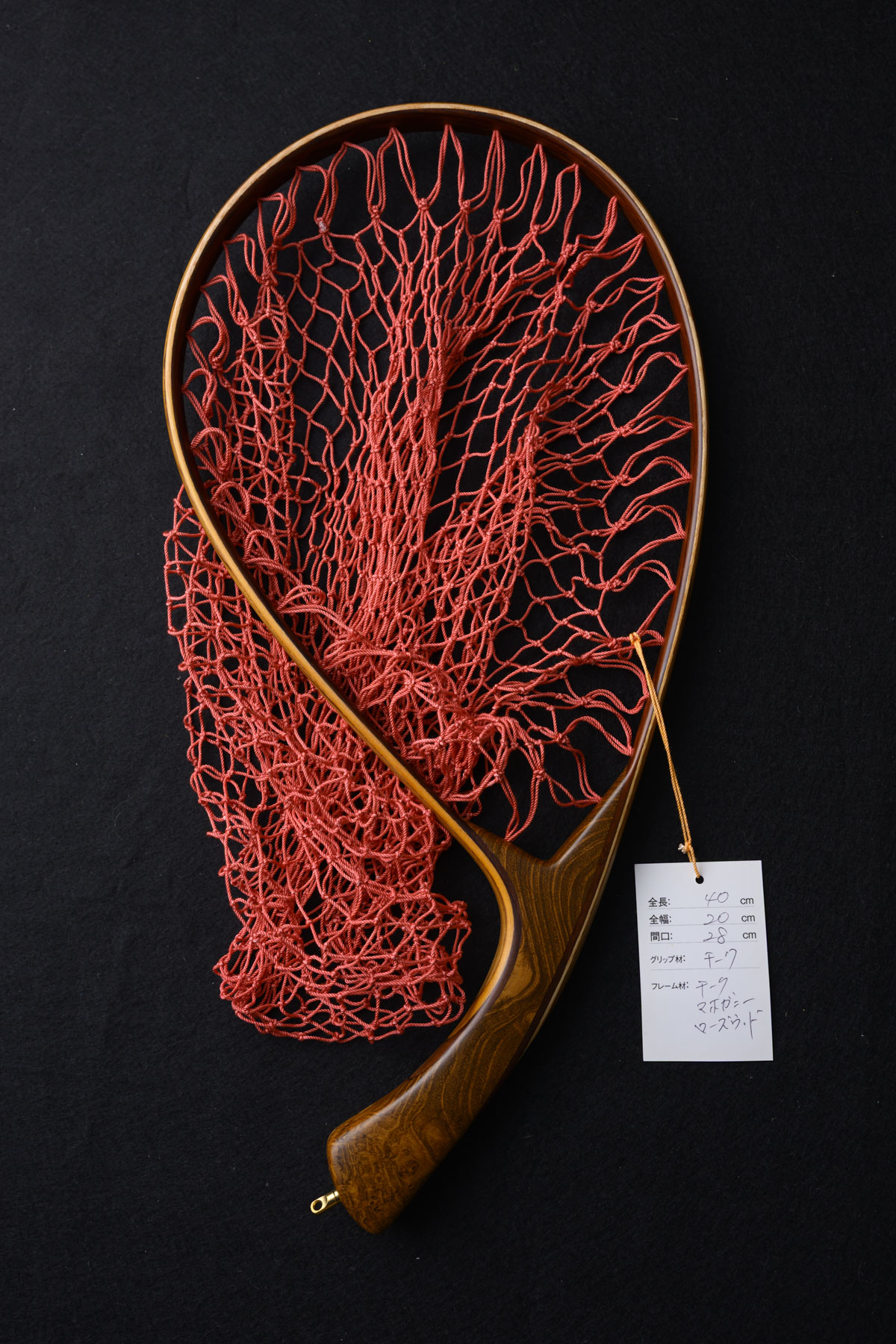 ワイズカスタム|【会員5%OFF】ランディングネット|40cm|グリップ:チーク|ネット:レッド|ハンドメイド|カーブ|Wisecustom(12564)